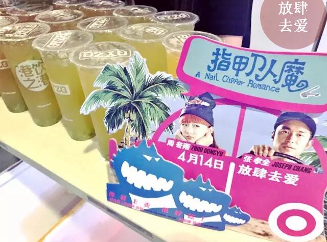 排队中。。。 距离电影开场45分钟 很多Fans都早早的来到了现场 看着桌上一排排的港饮 真是比电影都让人激动呢~